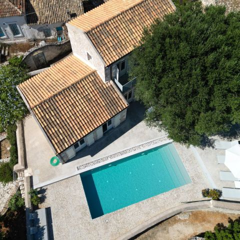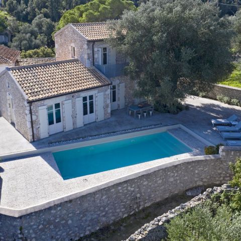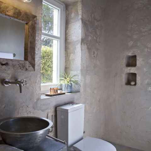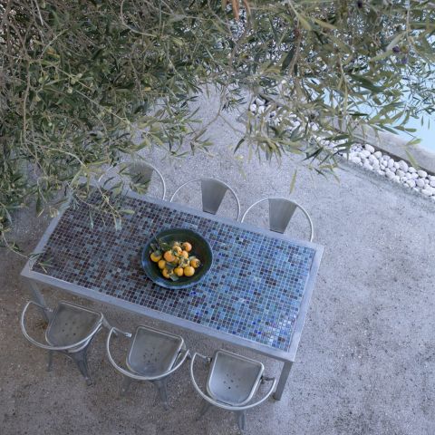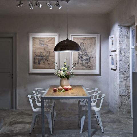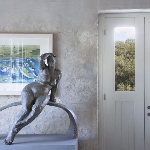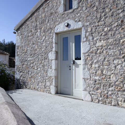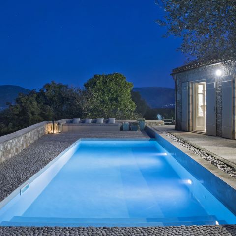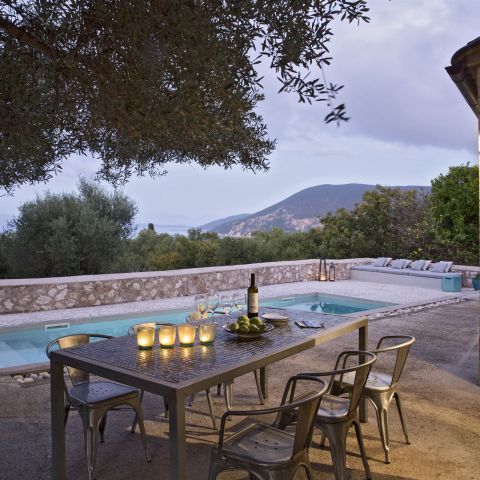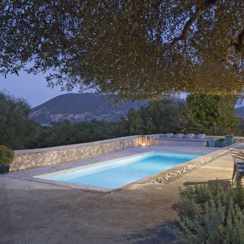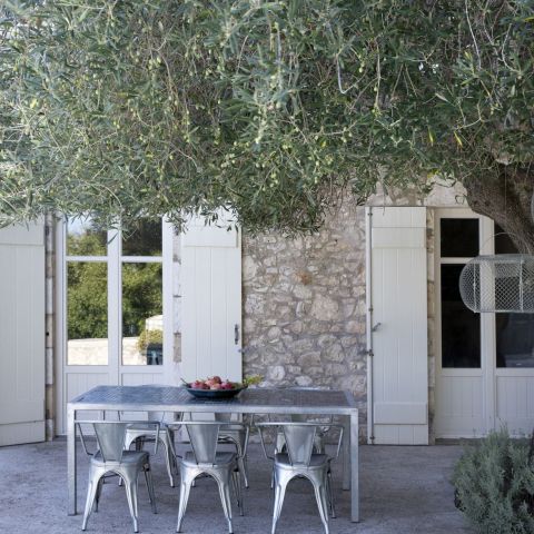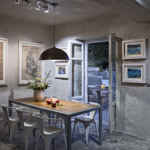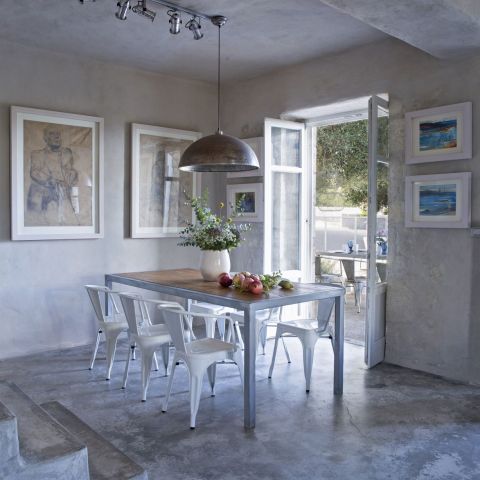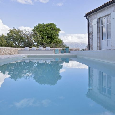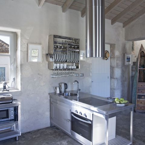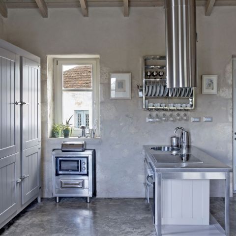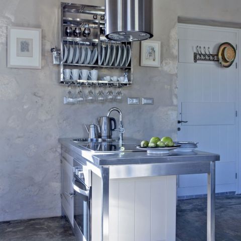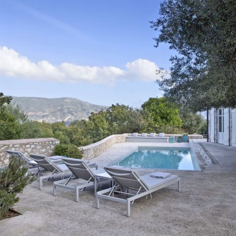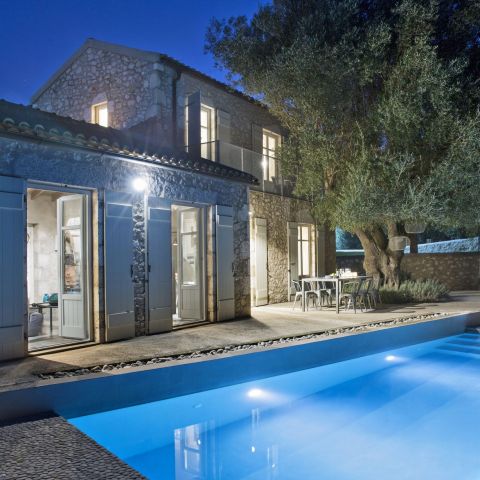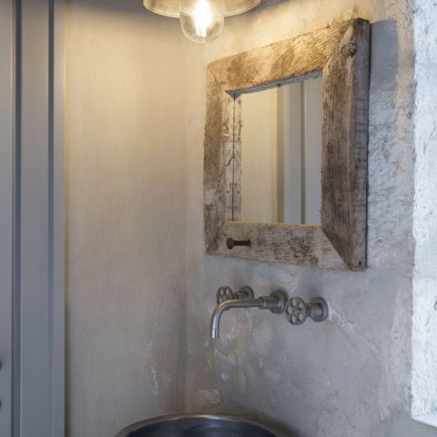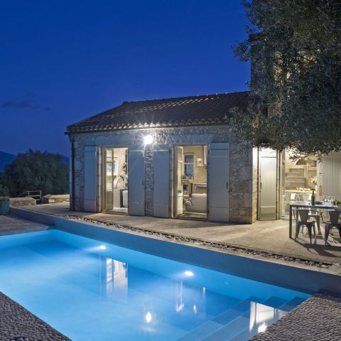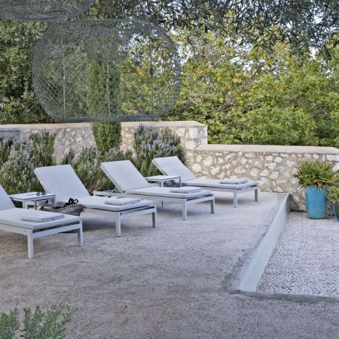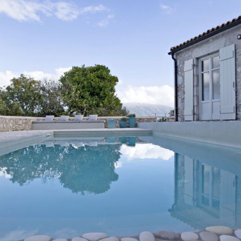 Warm shades of grey and taupe reminiscent of the ancient olive trees, and blue green tones like the hidden underground lakes, create the absolute island home.