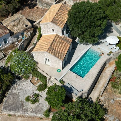 Built of stone just like the strict dwellings of Erissos, with angled roofs and narrow windows.